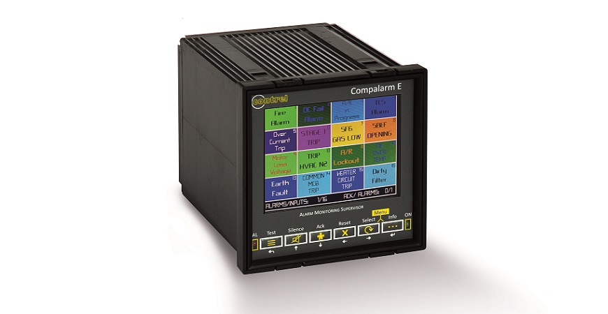 Programmable alarm annunciator The Compalarm E alarm annunciator is used to inform the operator that a process has gone beyond set limits using a visual and audible alarms. The TFT color display offers a user-friendly interface, which can be set the number of cells required to suit individual panel designs. It’s possible to set different display window types: small, medium, large window, icon style, alarms group version. The rich variety of functions, makes the annunciator the ideal choice for a wide range of applications. The Compalarm E is also provided with a RS-485 interface with Modbus protocol to consent the integration in supervision systems. Description