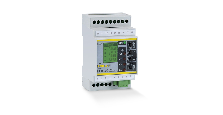 ELR-4C ELR-4C Earth-leakage relay class Type A with 4 channelsMultipoint earth leakage relay 4 inputs with associated toroid sensors measure the leakage current in an electrical installation to detect levels that may be damaging. Ideal for protection or alarming, the products offer multiple setting. RS485 is available.