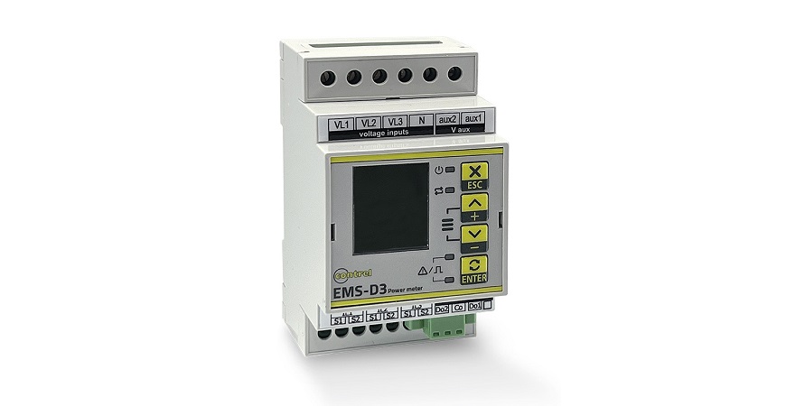The meters of the EMS-D3 series guarantee precision monitoring of the three-phase electrical parameters. It provides the various measurement functions necessary for monitoring electrical installations, such as current, voltage, power, power factor, frequency and energy.